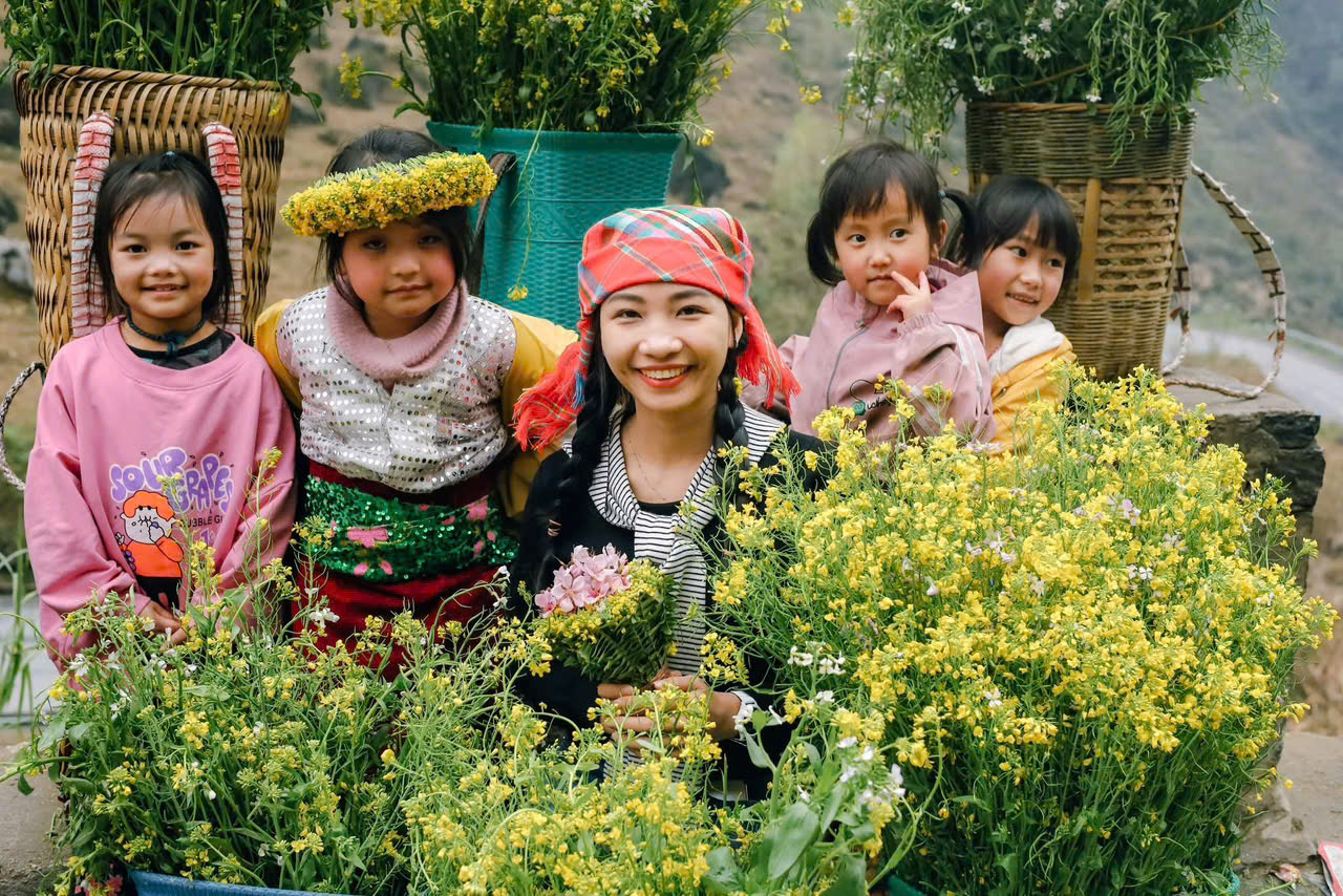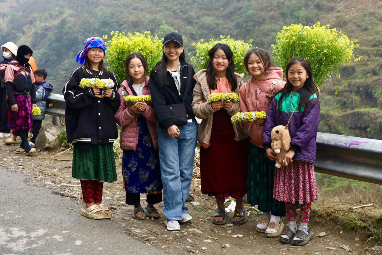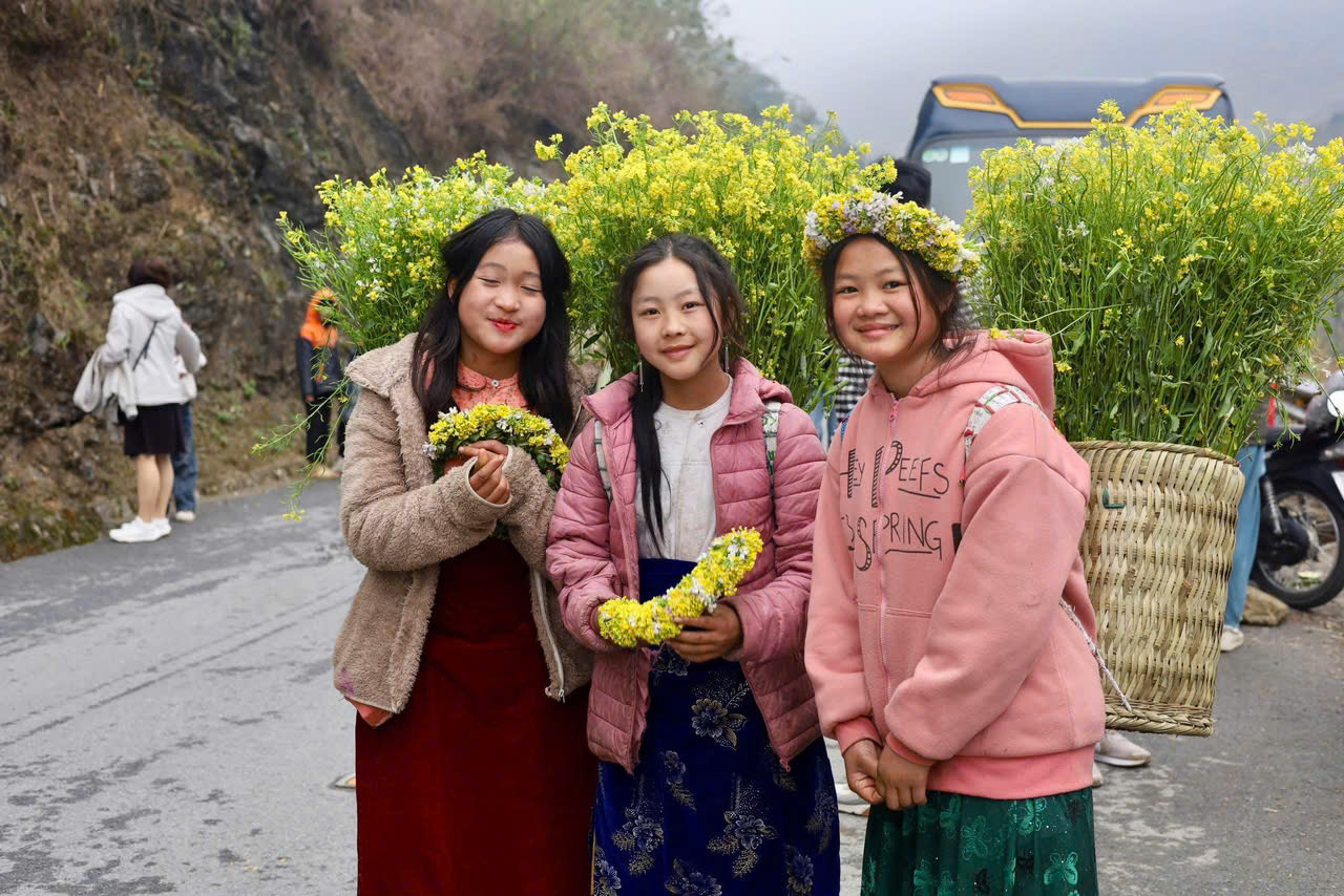 Đèo Mã Pí Lèng uốn lượn giữa núi non hùng vĩ, như một dải lụa vắt qua trời. Đứng trên đỉnh đèo, cả thung lũng sâu thẳm hiện ra trước mắt, mây trôi là là bên những vách đá dựng đứng. Trên đường đi, chúng mình bắt gặp những em bé người H’Mông má ửng hồng trong gió lạnh, tay cầm những bông hoa rực rỡ, đeo trên lưng những chiếc gùi nhỏ xinh đầy sắc hoa dại – đẹp như những bức tranh miền sơn cước.